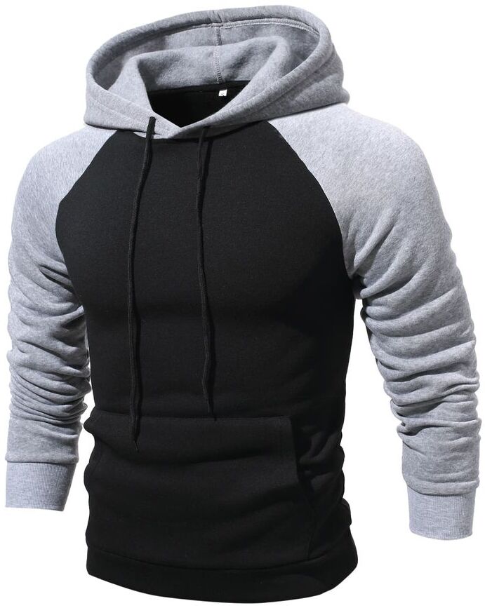 • Design: Modern Two-Tone Color-Block design with a black body and contrasting light grey raglan sleeves and hood. This creates a sporty and contemporary aesthetic.